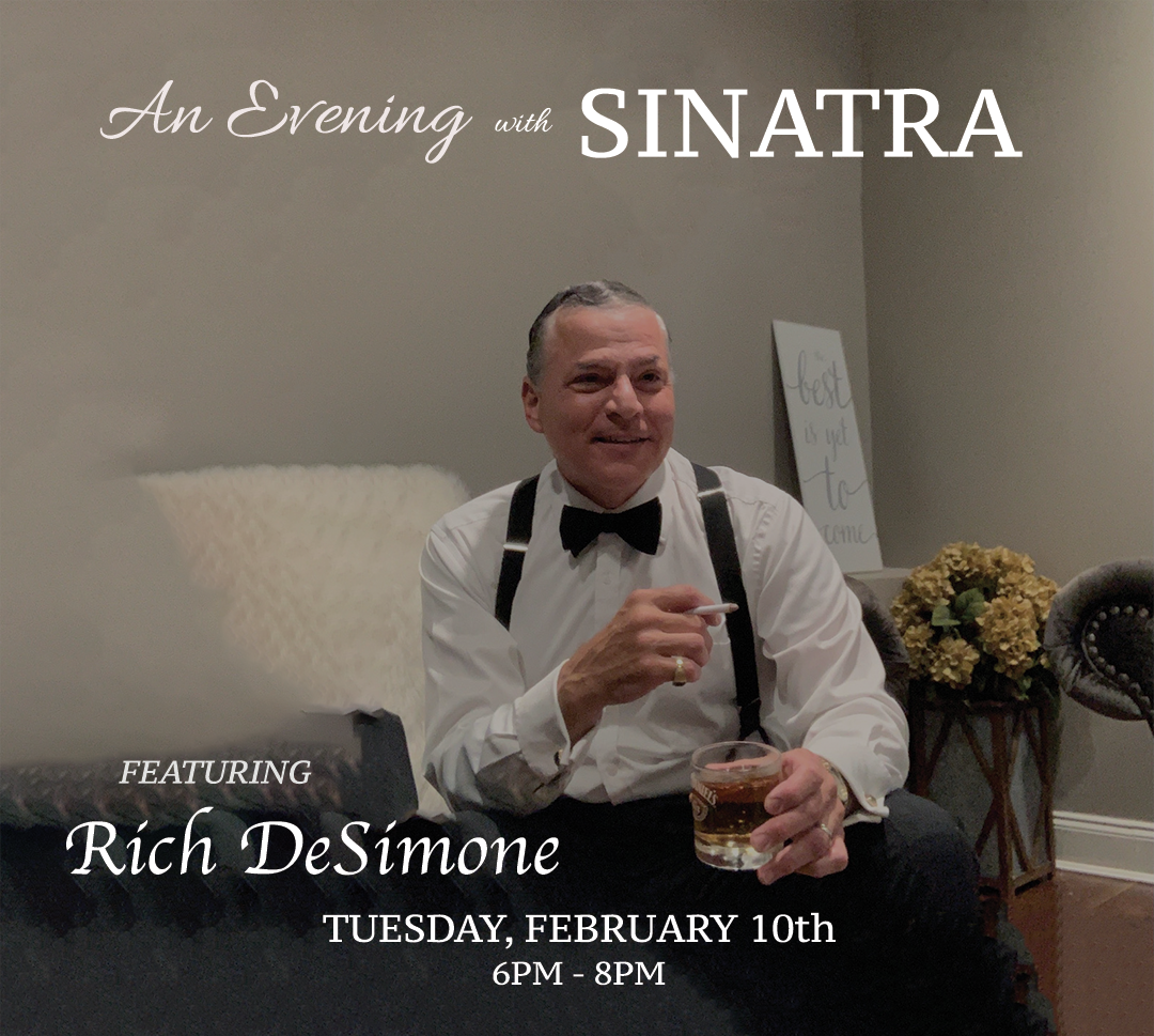 Join us on Tuesday, Feb 10th, for an evening of Sinatra’s classic tunes and delicious Italian cuisine. This is one night you won’t want to miss!
